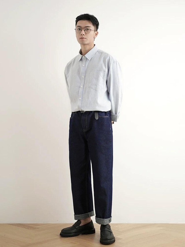 ライトブルーのストライプ柄が爽やかなオックスフォードシャツ。柔らかな質感のコットン素材で、リラックスした着心地を提供します。 ゆったりとしたシルエットが特徴的で、カジュアルなシーンから少しフォーマルな場面まで幅広く活躍します。 胸元のポケットとボタンデザインがアクセントになり、コーディネートに遊び心を加えます。 デニムやチノパンとの相性も抜群で、さまざまなスタイルにマッチします。 【洗濯注意事項】 | 1. 新しい服には多少の匂いがありますが、自然に洗うことで匂いを減らすことができます。 | | 2. 洗濯の際、洗剤を直接衣類にかけると部分的に色落ちすることがありますので、洗剤を溶かしてから衣類と混ぜてください。 | | 3. 綿素材はできるだけ低温の水で洗濯することをお勧めします。何度も洗濯すると毛玉ができるのは正常な現象ですので、大切に扱ってください。 | | 4. 純綿素材はできるだけ事前に縮ませて洗水処理を行ってください。それでも縮む現象を避けることはできず、縮率5%以内は正常と見なされます。 | | 5. 濃い色の衣類(特に白い衣類)は必ず分けて単独で洗ってください。色移りを防ぐためです。 | | 6. 材料はできるだけ低温の水で洗ってください。どうしても洗濯機に入れる場合は洗濯ネットを使用して保護し、可能な限り平らにしてシワを防いでください。 | | 7. ジーンズは染色製品ですので、浸け置きしないでください。初回の洗濯では少し色落ちがあるのは正常であり、日常の着用には影響しません。 | | PS. 注文すると、上記の洗濯注意事項に同意し理解したものとみなされます。不適切な洗濯による衣服の色落ち、縮み、毛玉などの損傷については、当店は返品・交換などのアフターサービスを責任を負いません。すべてのお客様が私たちの衣類を大切に扱っていただければ、衣類もあなたのそばに寄り添うことができるのです。それが私たちの初めの思いです。 | 【サイズ表】 | サイズ | 肩幅 | 胸囲 | 着丈 | 袖丈 | | S | 52 | 110 | 71 | 55 | | M | 54 | 116 | 72 | 56 | | L | 56 | 120 | 73 | 57 | | XL | 58 | 124 | 75 | 59 | | XXL | 60 | 128 | 77 | 60 | 【試着者】 | 試着者 | 身長/CM | 体重/KG | 試着サイズ | 効果 | | - | 160 | 50 | S | ゆったり | | - | 165 | 52 | S | フィット | | - | 170 | 55 | M | ゆったり | | - | 175 | 65 | L | フィット | | - | 178 | 72 | XL | ゆったり | | - | 180 | 85 | XXL | フィット | | 肩幅 | ウエスト | | 47cm | 75cm | (cm) ※1~3cm程度の誤差がある場合がございます。 ———————————— ご購入前にこちらをお読みください →●https://thework.theshop.jp/about● ————————————