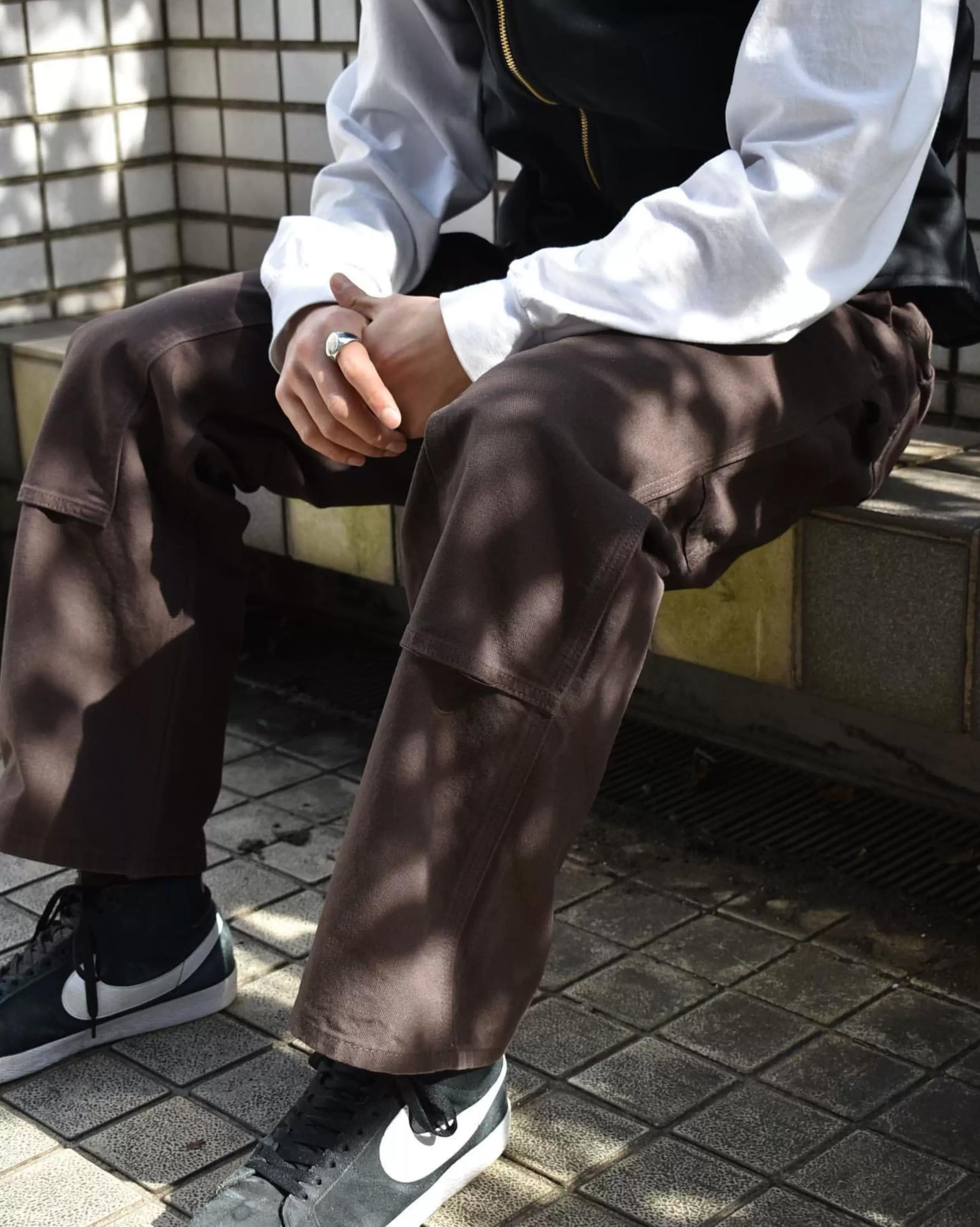 ダブルニー ワークパンツは、タフで実用的なデザインが特徴。コットン素材の滑らかな質感とともに、色はブラックやブラウン、キャメルがあり、さまざまシーンにマッチします。ジッパー及びボタンがアクセントとなり、ポケットも充実。カジュアルなスタイルで、DIYやキャンプにも最適です。