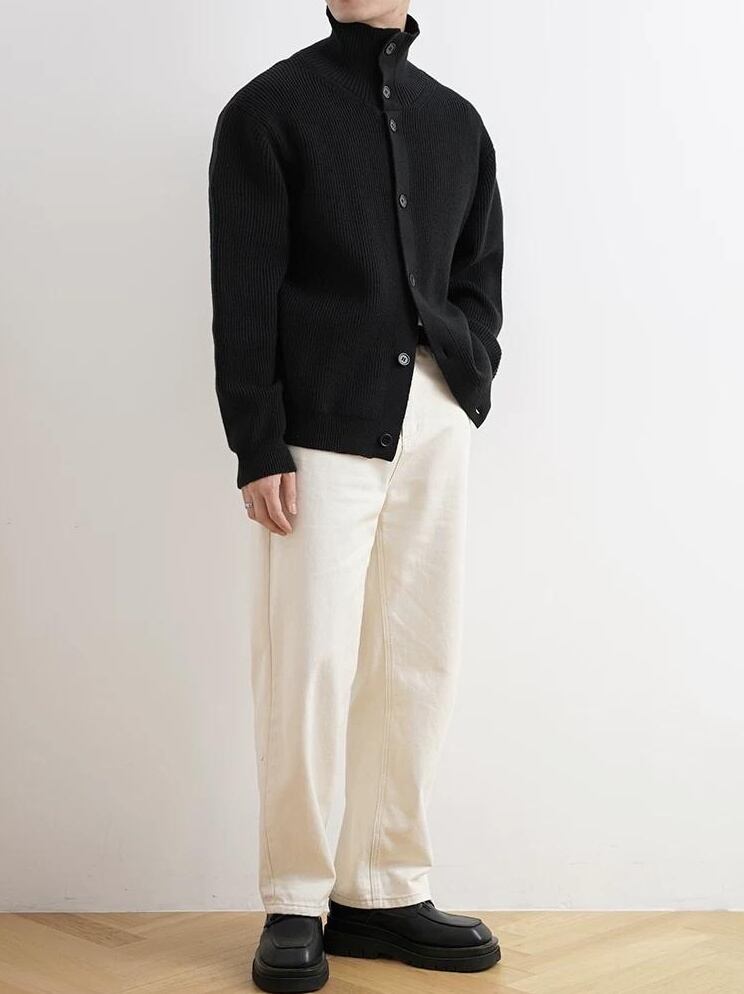 ラグジュアリー ニット カーディガン スタンドカラー