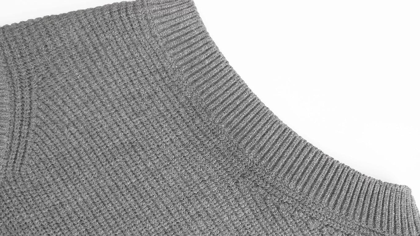 柔らかな肌触りのグレーのニットベストは、リブ編みのデザインが特徴的で、カジュアルにもフォーマルにもマッチします。